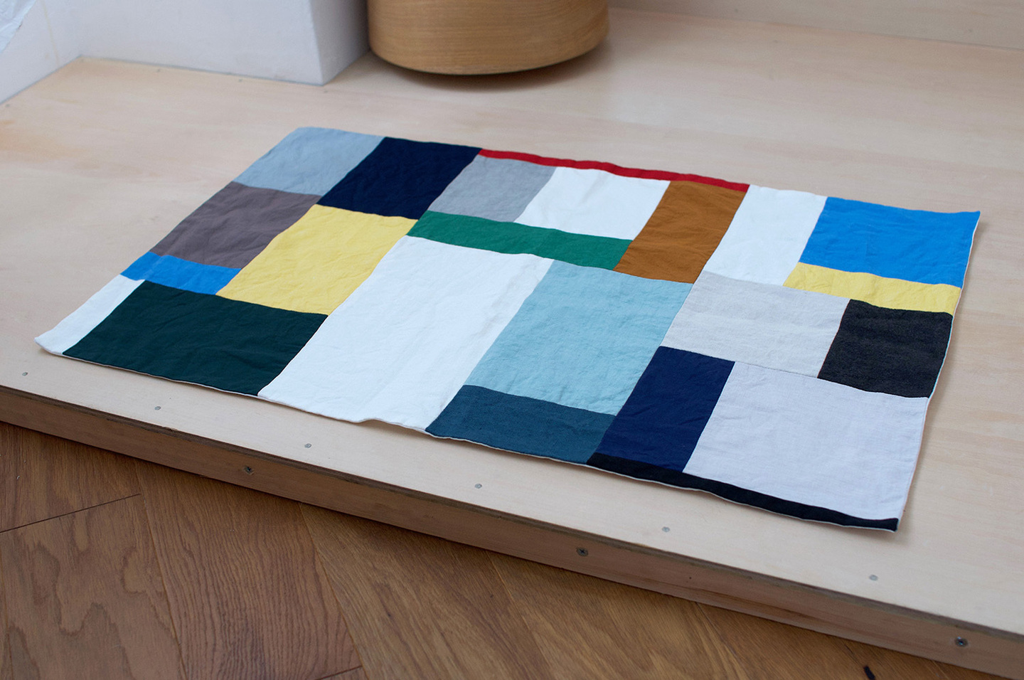 2012年6月9日、シロ.は国分寺の小さなプレハブ小屋から始まりました。少し広い玄関?ほどのスペースは、居心地がよくて出会う人との関係性をより深く結ぶつけるような特別な場所でした。自宅の玄関でお迎えするような、そんな感覚があったことを思い出して、今回10周年に特別な玄関マットを作ろうと思いました。生地の一枚一枚が出会いであったとするならば、組み合わさることで形になる。シロ.がここまでこれたのは、そういうことなんじゃないかな。