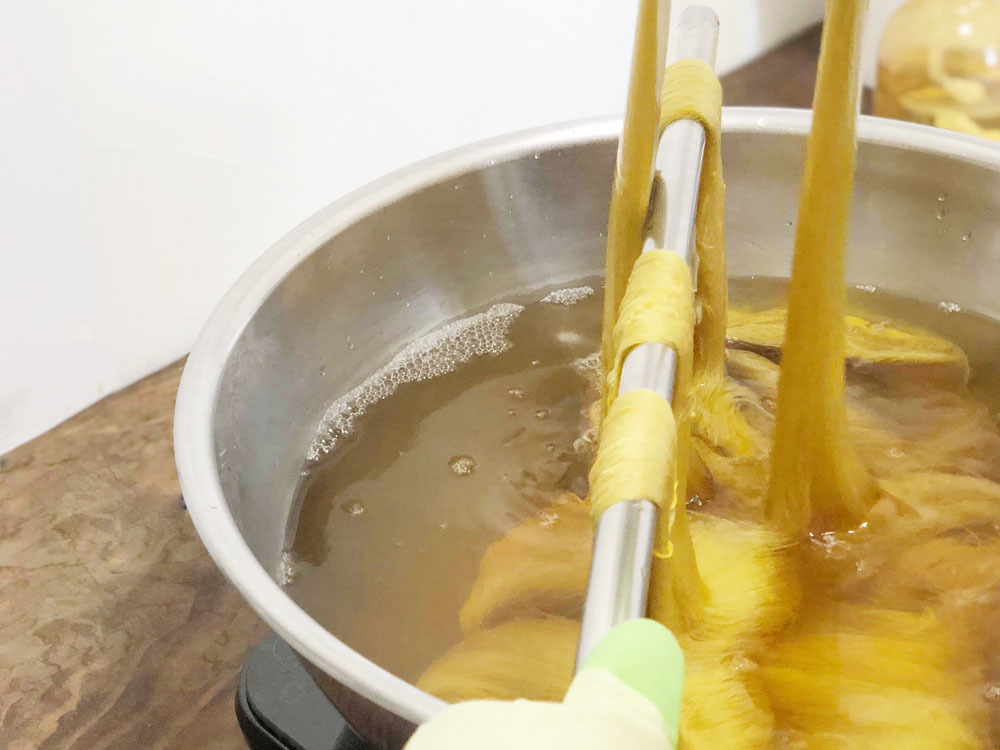 1粒(リュウ)の繭は、およそ1300mの長さ。