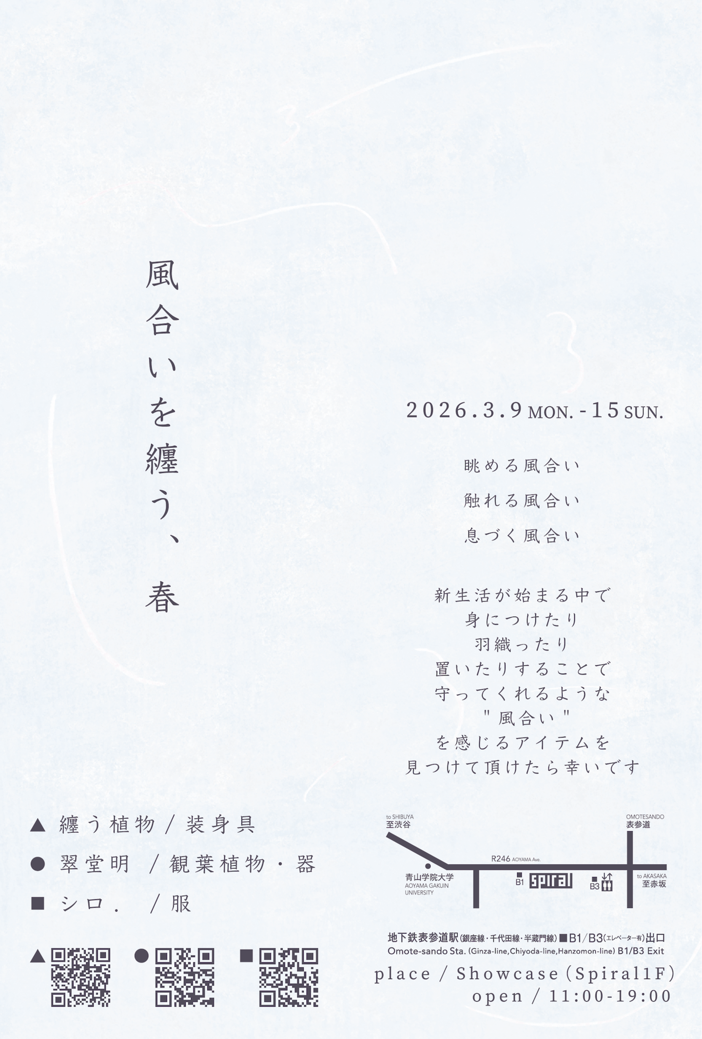 纏う植物、翠堂明、シロ.の合同展示販売会が2026年も開催します。